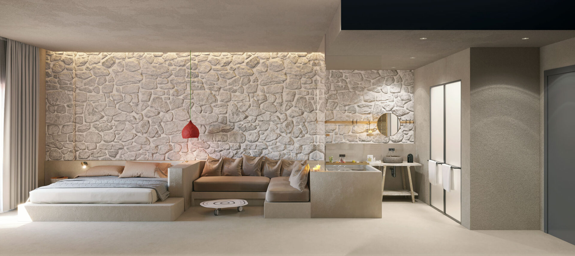 Çatalca Farm Otel, is designed to generate a comfort and chill zone to become distant form the daily life stress and rush living. The usage of natural materials in rooms such as mat, stone and water reflects the natural environment to interior. The light color usage with the nature reflection creates the feeling of serenity to relax and refresh.