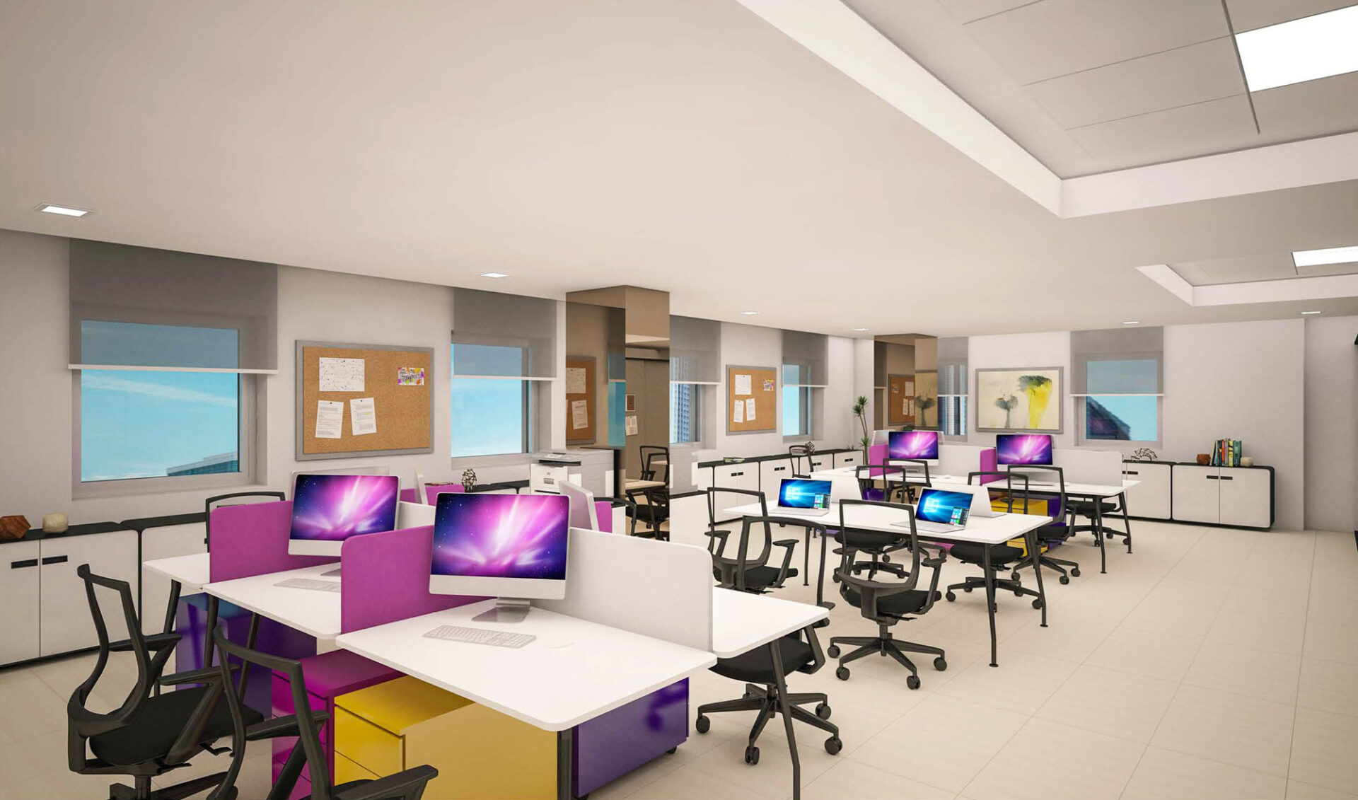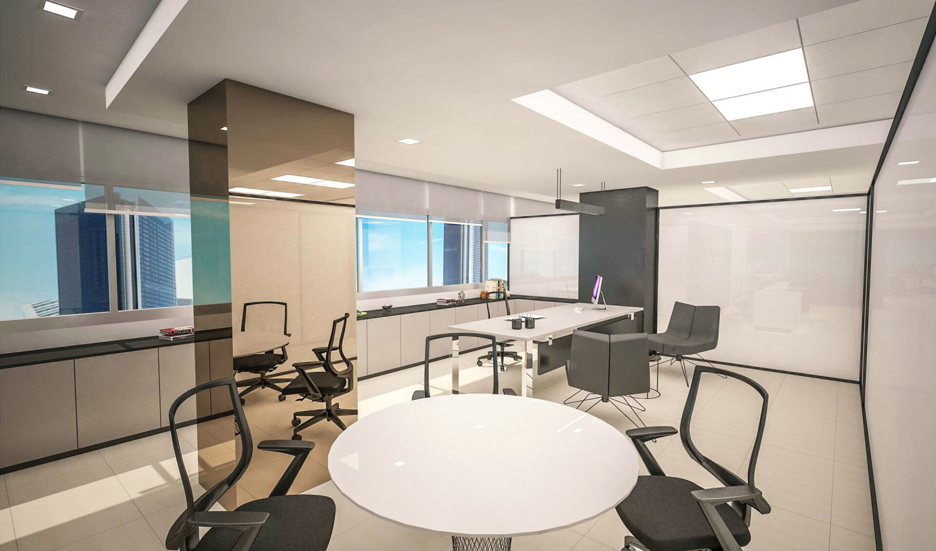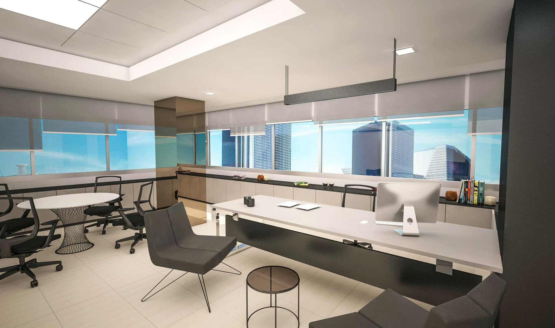 The Elle Corte Residence is a compact office design where it has seperate areas refers to different funtions divided skillfully by constructive elements. The neutral color usage and furniture choice creates the simplicity of the place where it is contrastly supported with the dynamism that popping colors creates. The regular geometric pattern continuity with geometric furniture creates an organized layout in the space where this forms the concentrated peacefull mood of the area.