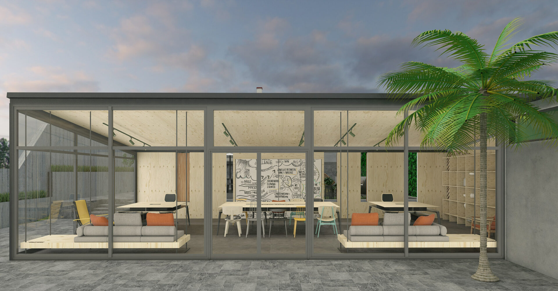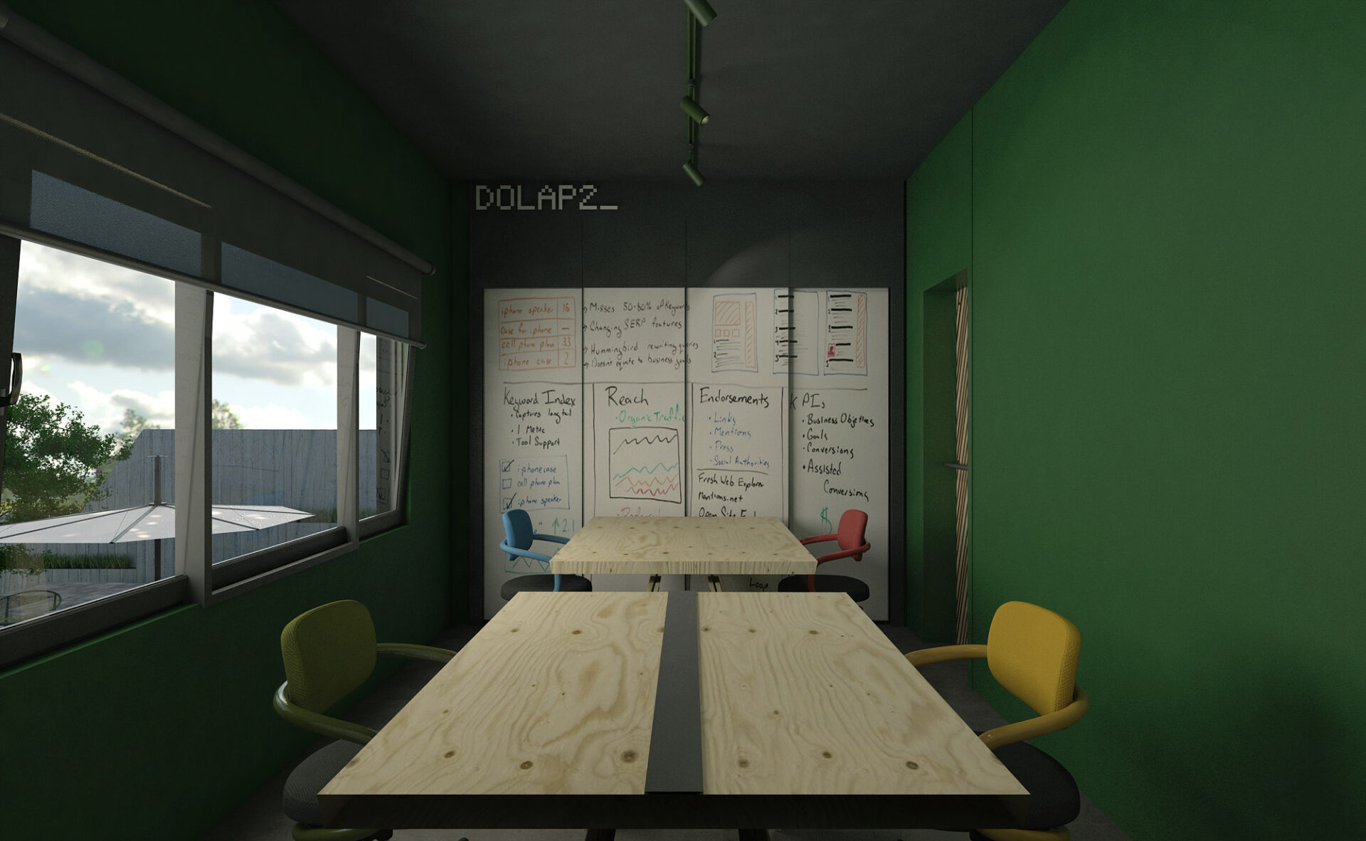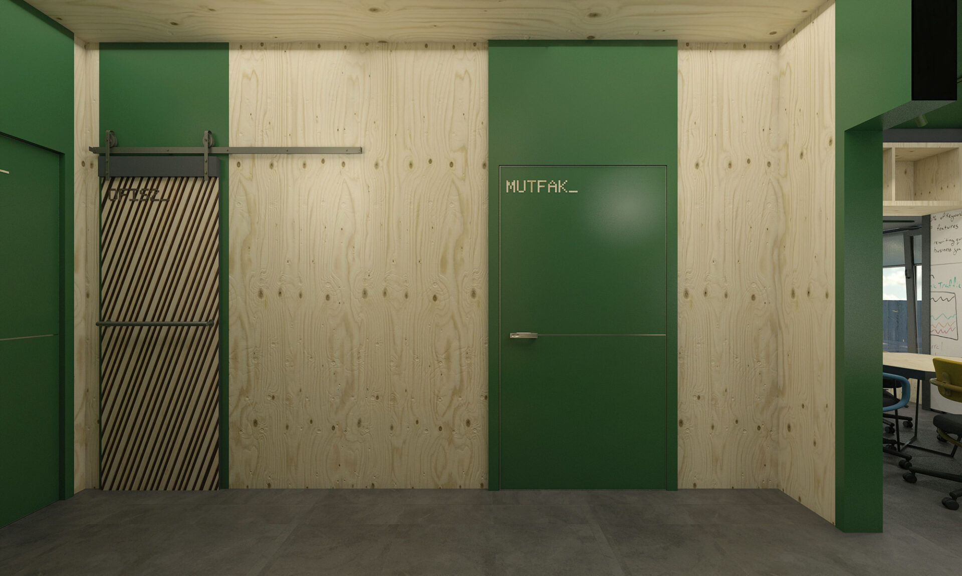 Projected between green land, this office project is a minimal biophilic design where it’s integrated with the environment. The green color is pointed out in the design, where it gives the feeling of relaxation and concentration in nature. The function oriented office, satisfies many possible scenarios that a office can need.
