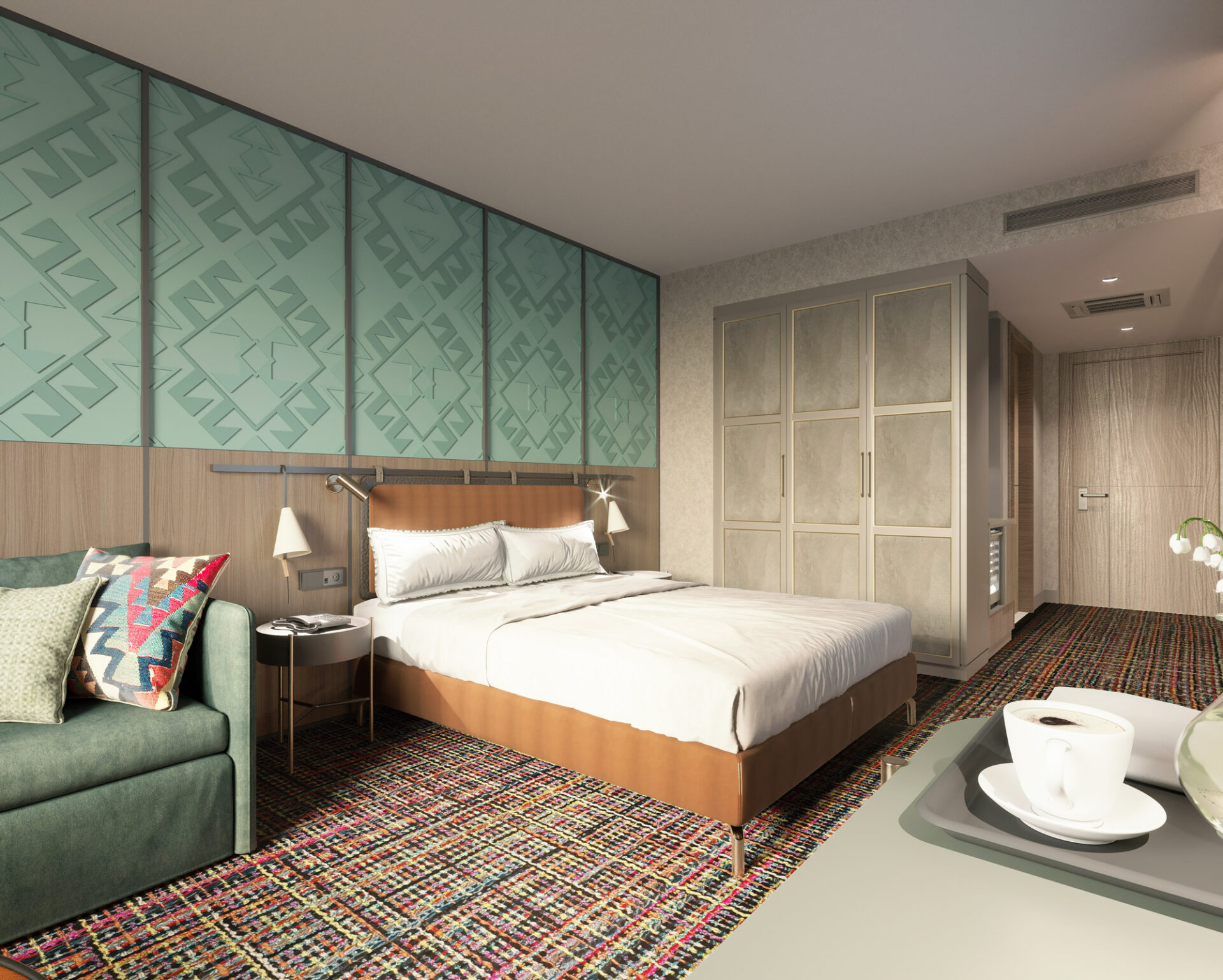 Mercure Trabzon Hotel is the reflection of the cultural items of Trabzon, which brought a different line to city hotels, where it’s colors and patterns are used as functional and decorative objects all over the hotel. The famous “Keşan” pattern is an inspiration point for the design perspective where this visual perception of Trabzon feeling is also combined with the independent comfort zone and offering a peaceful space far away from the city chaos.