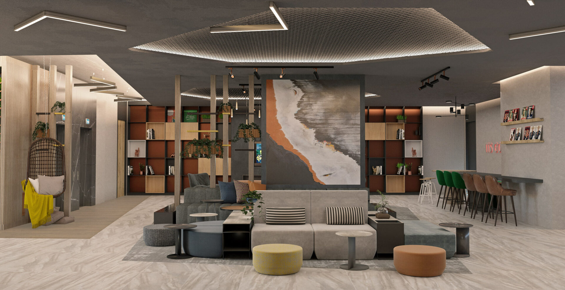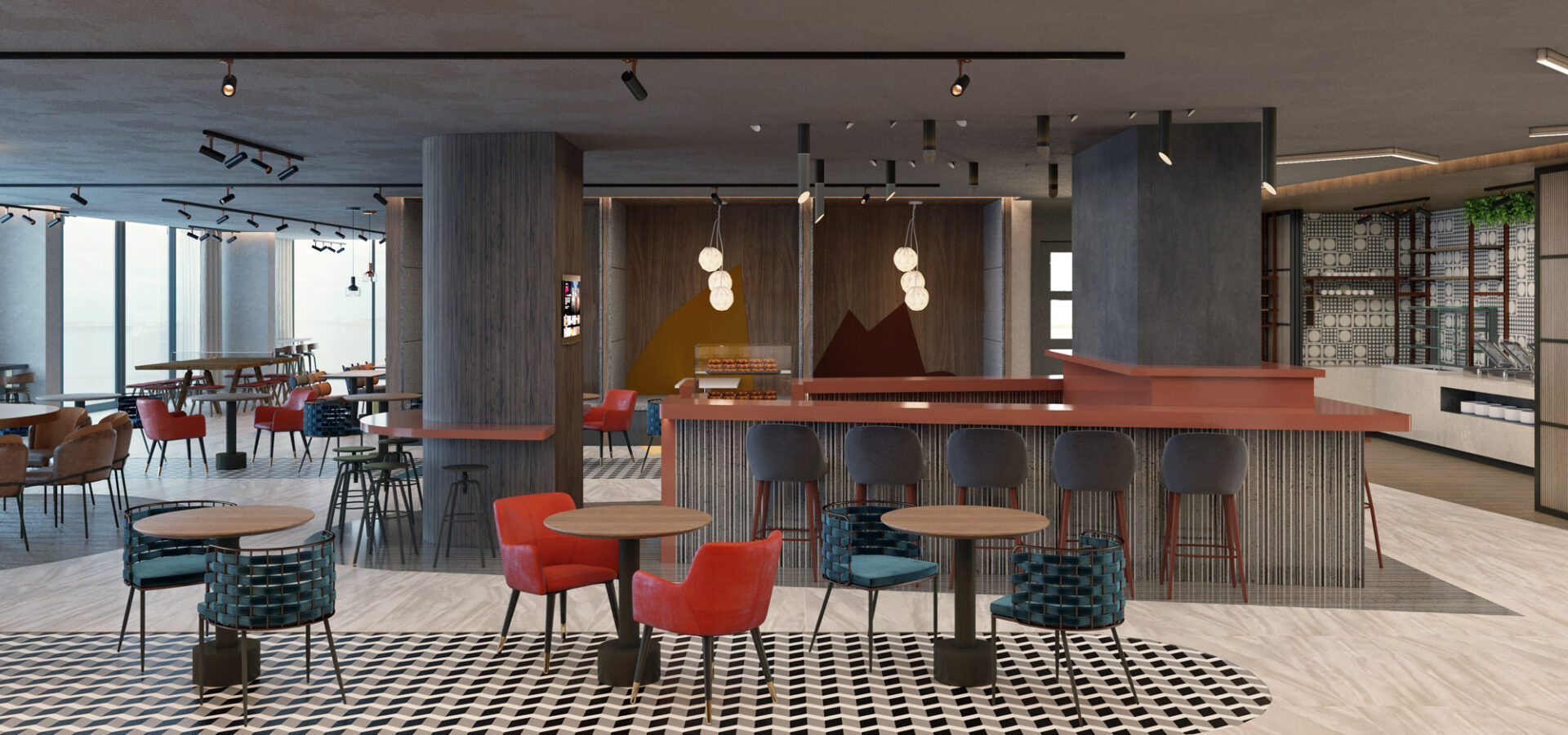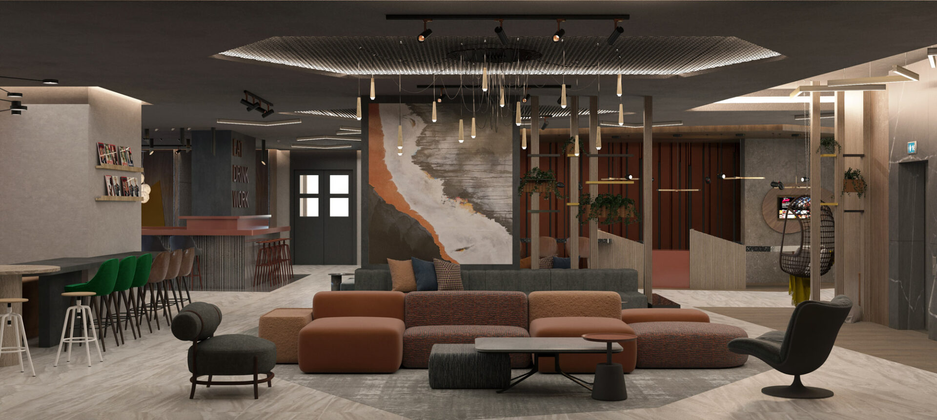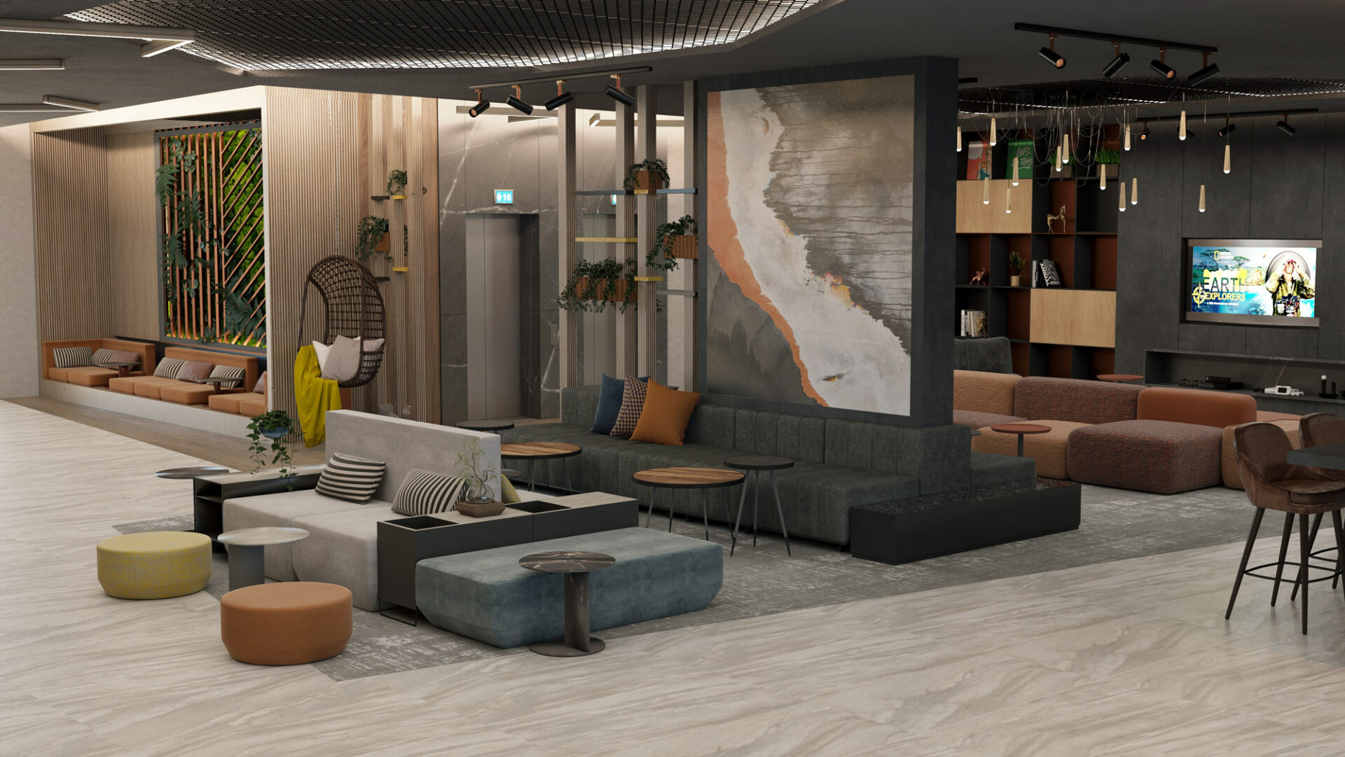 The Novotel Gaziantep Project represents comfortable spaces providing the best benefit with its intimate but functional line. It was aimed to establish emotional ties and make the guests feel comfortable at the hotel with the warm designs leaving the feeling of loneliness. This goal was achieved by using contrast colors and creating intimate spaces in the lobby. A warm welcome was prepared for guests with the writing figures used on the walls without compromising the desire to create a useful space.