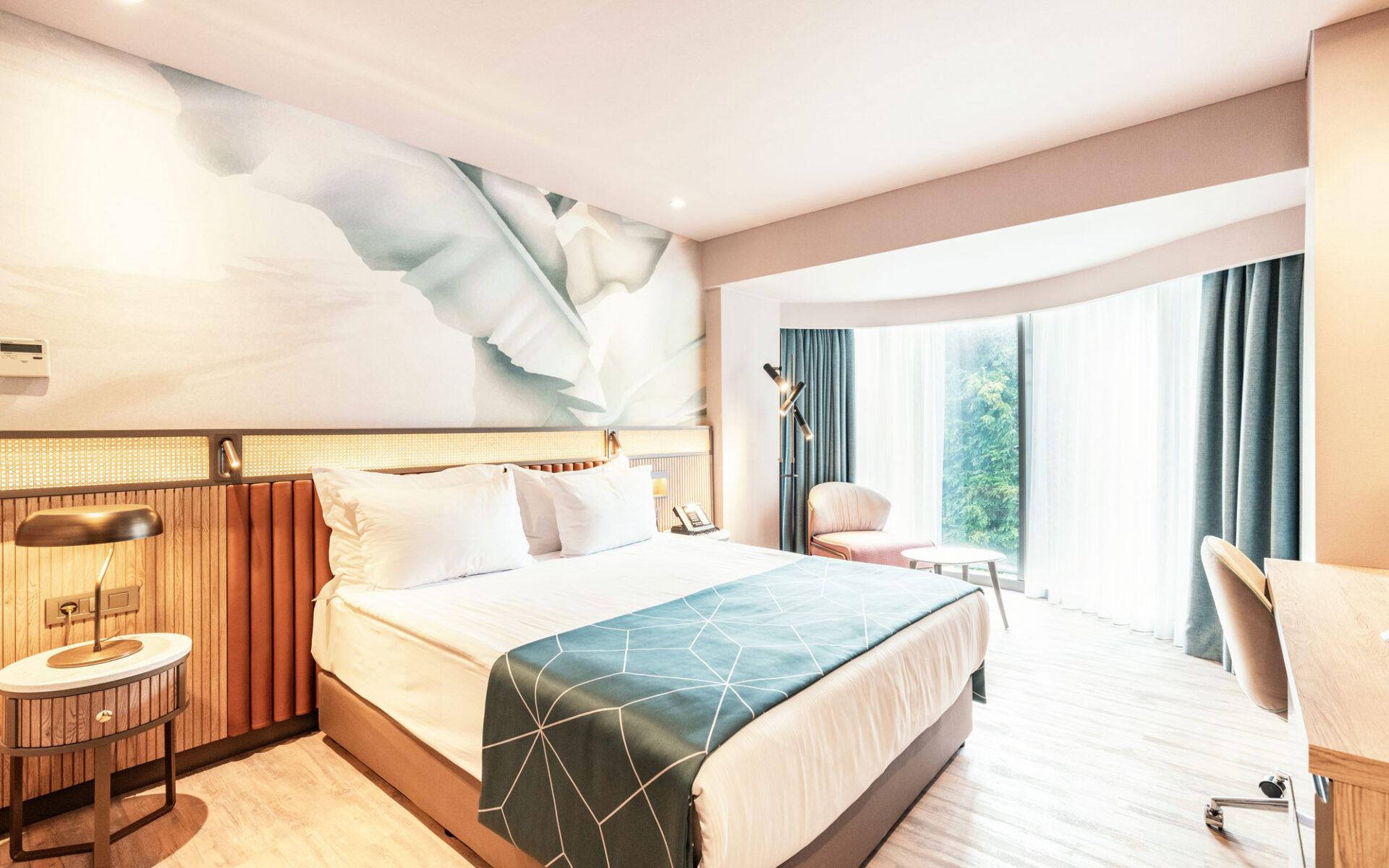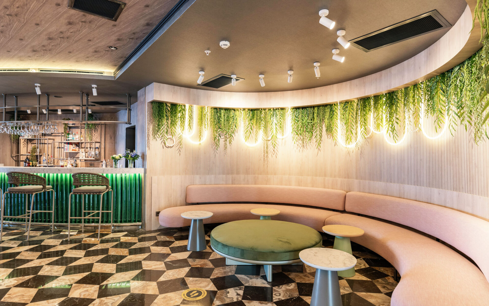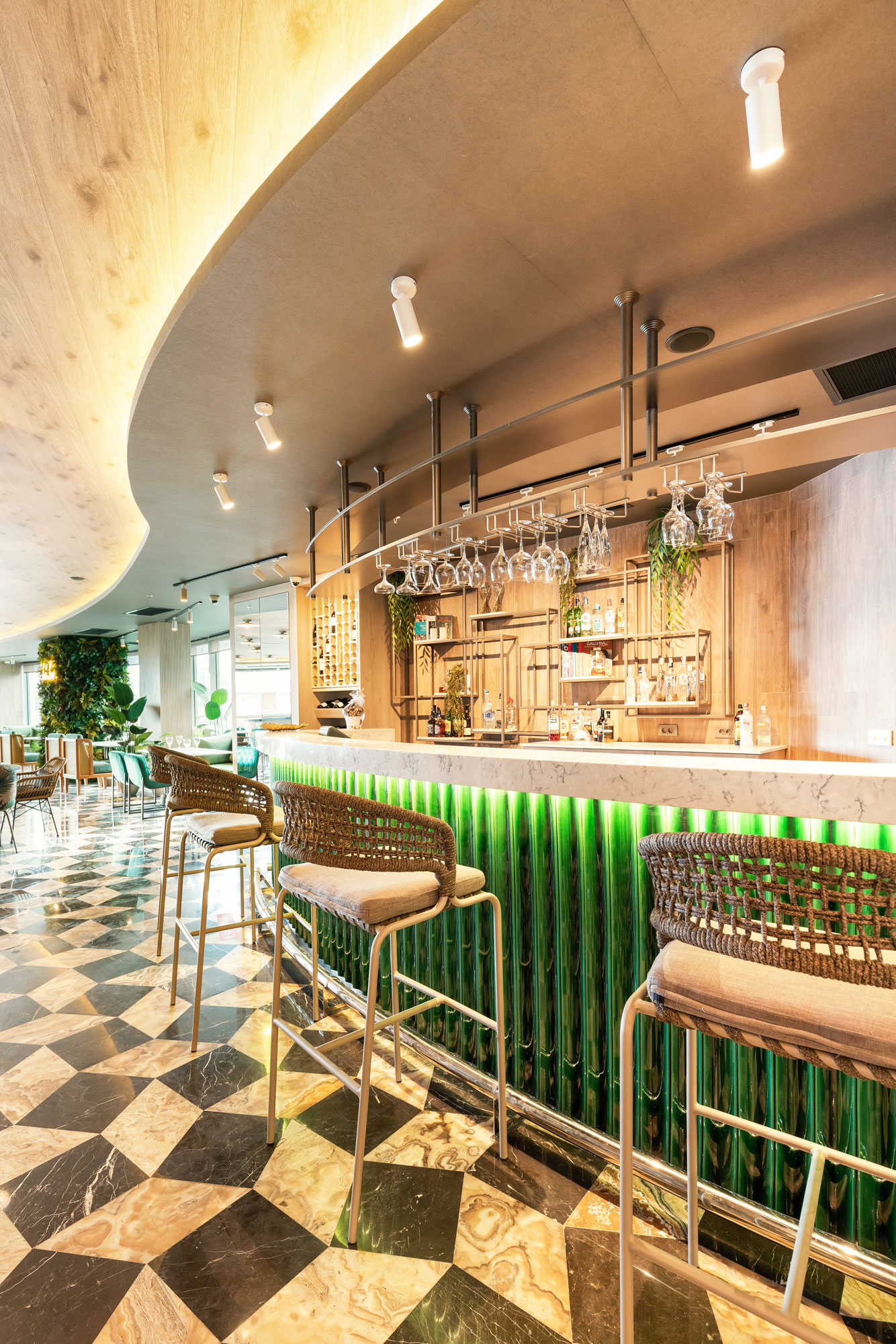 A magnificent coalescence of the patterns applied to both materials and appliances and pastel tones. The walls and the ceilings are designed to be displayed as artworks with the integration of lightning. A dreamy, green design approach welcomes the visiters with it’s energetic, joyful elegance.
