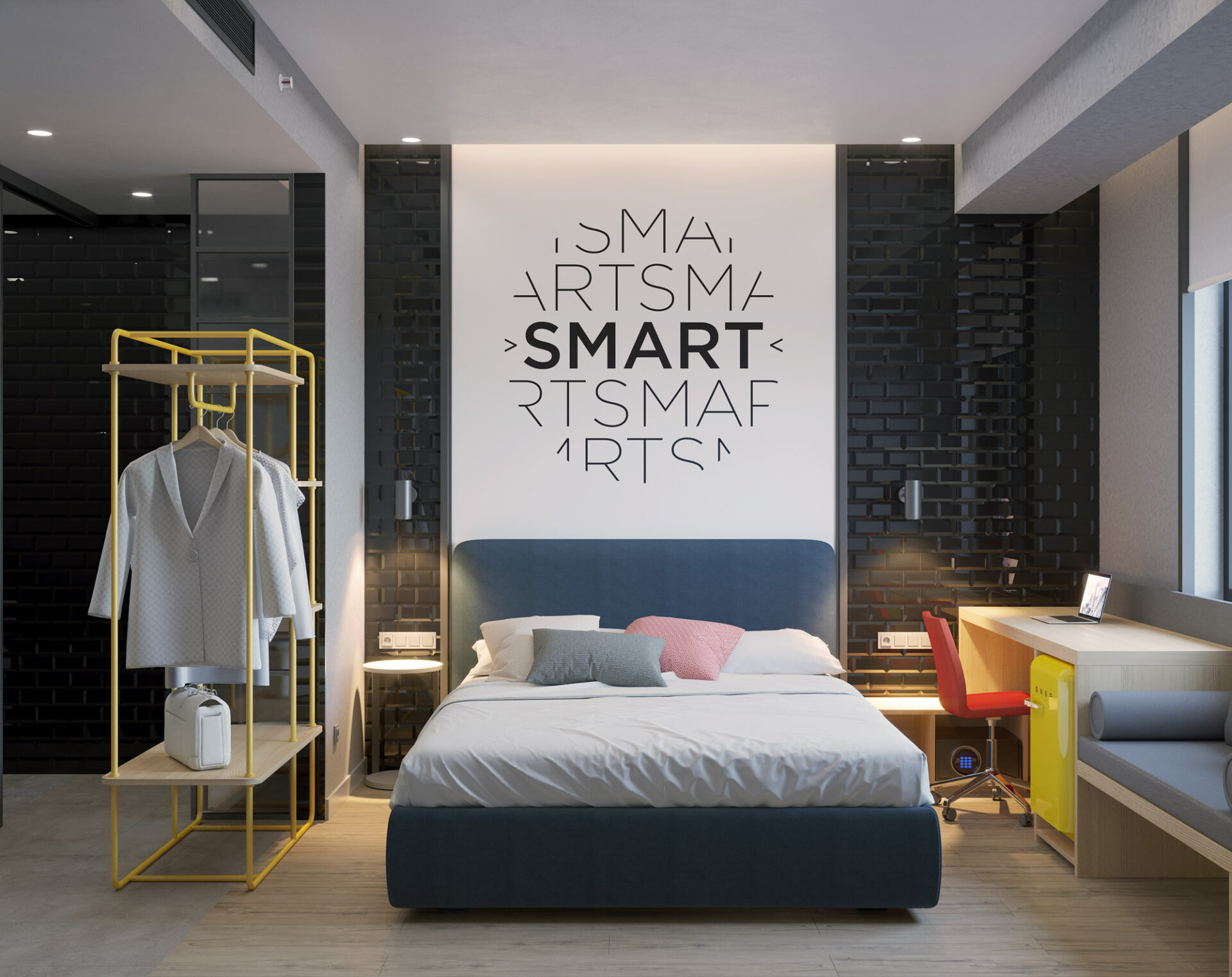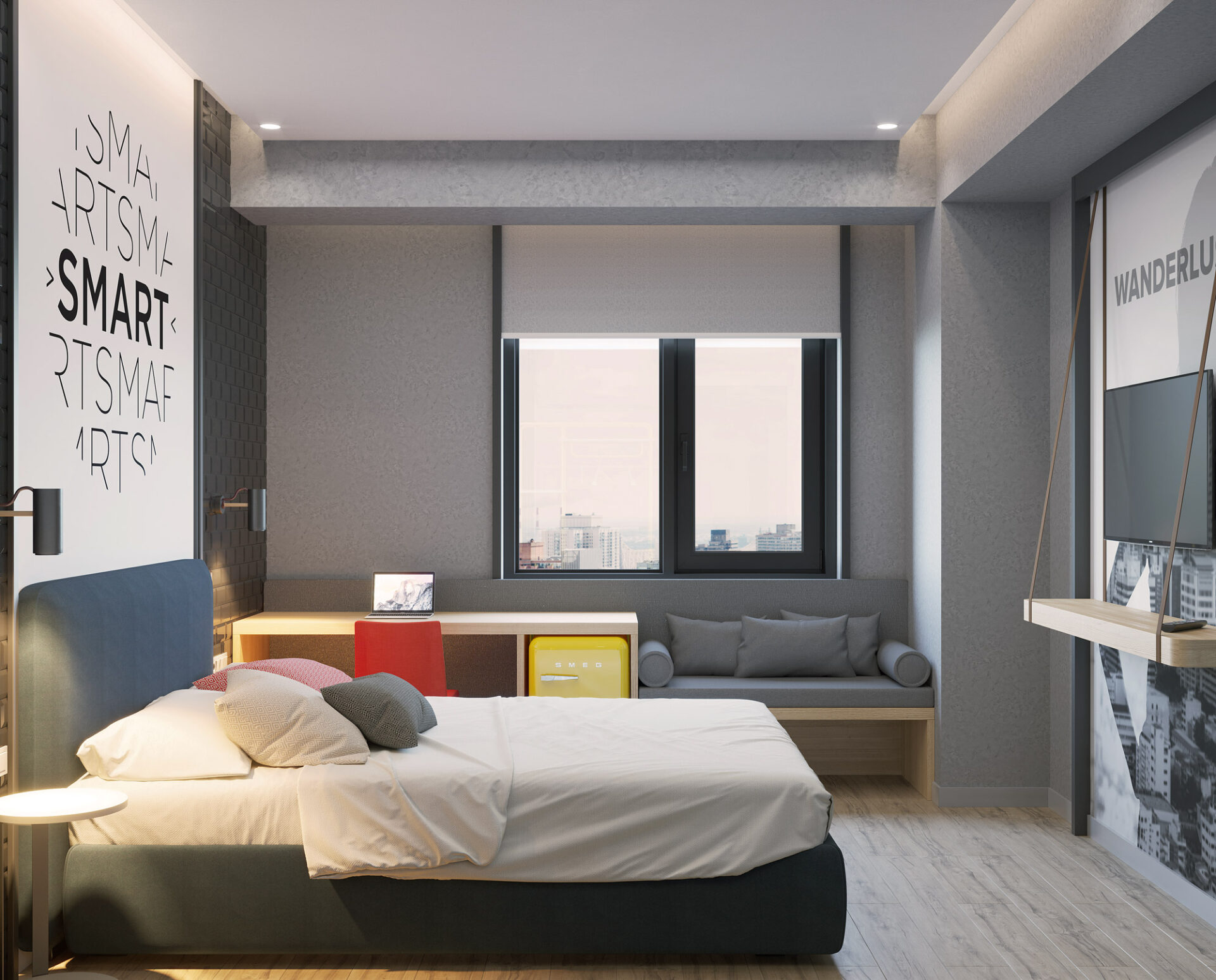 The smart, young, dynamic, technological and social hotel concept Smart by Dedeman is leading the understanding of new generation tourism! Smart by Dedeman, which aims to serve the Y-Z generation with the Dedeman Family, has adopted fun and colorful designs by acting differently from the existing corporate identity and target audience for this project, where young generations will stay. The technological infrastructure, traveling freely and the quality socialization idea which are the bases of the project in Smart and Dedeman, where young and dynamic designs are at the forefront.