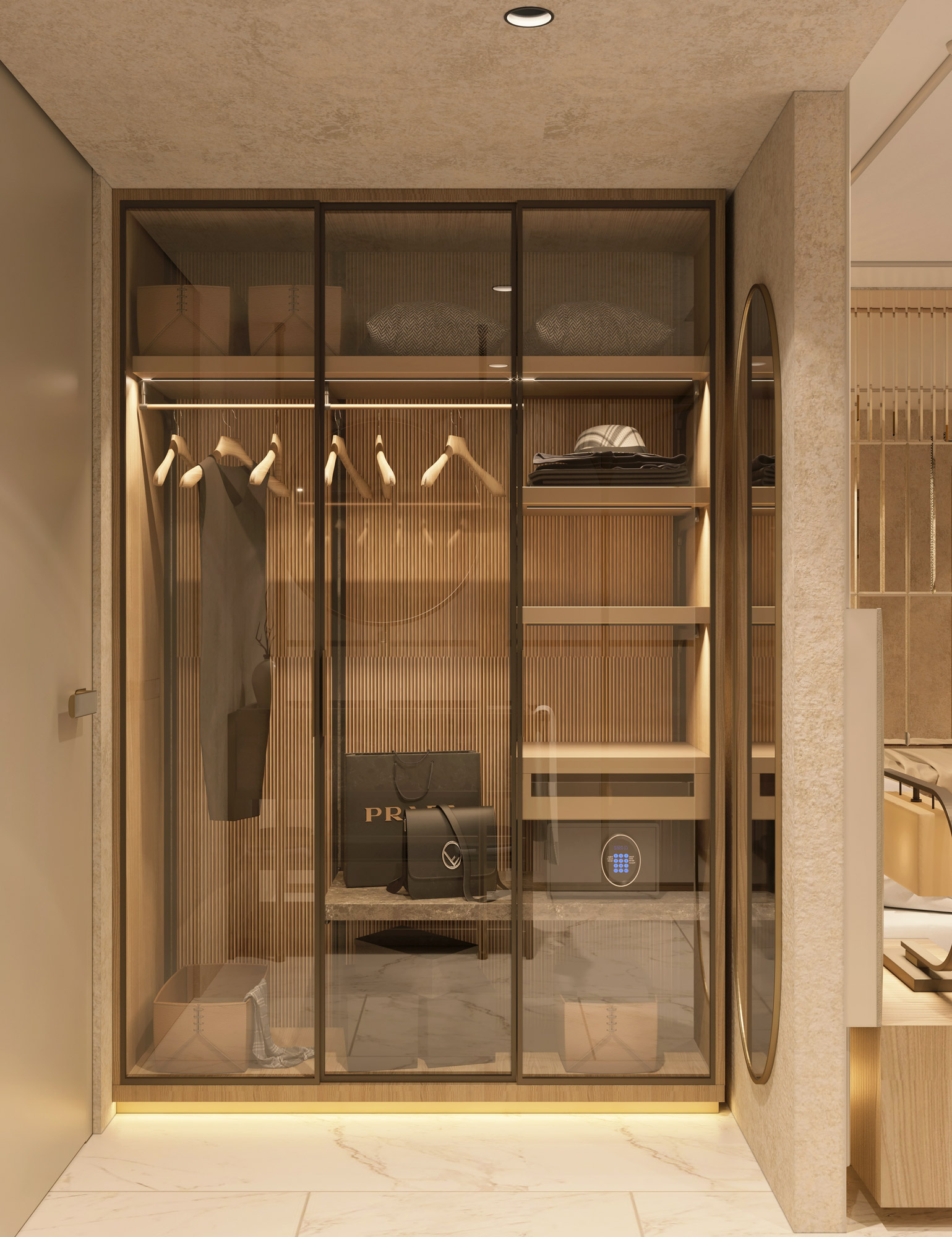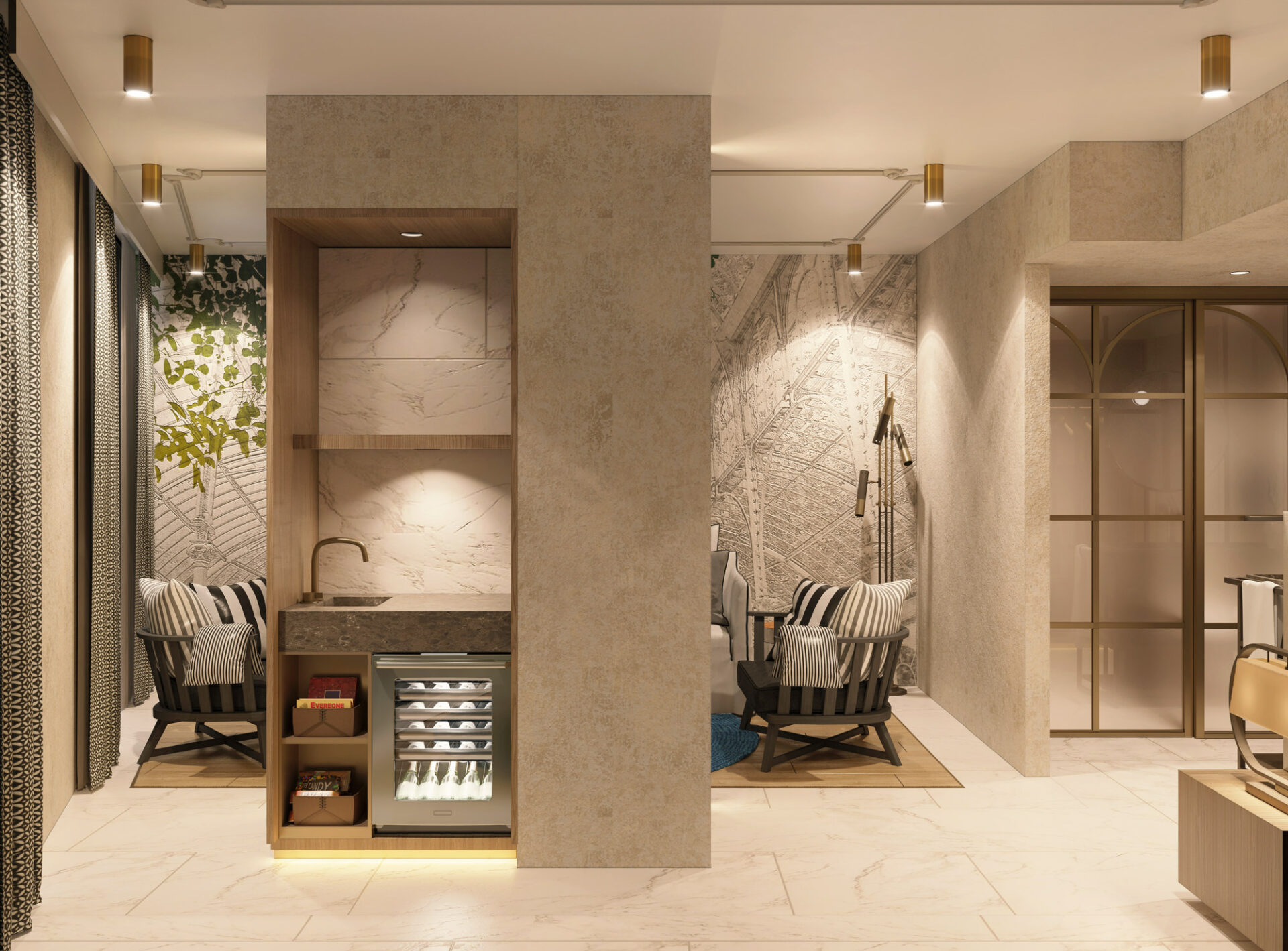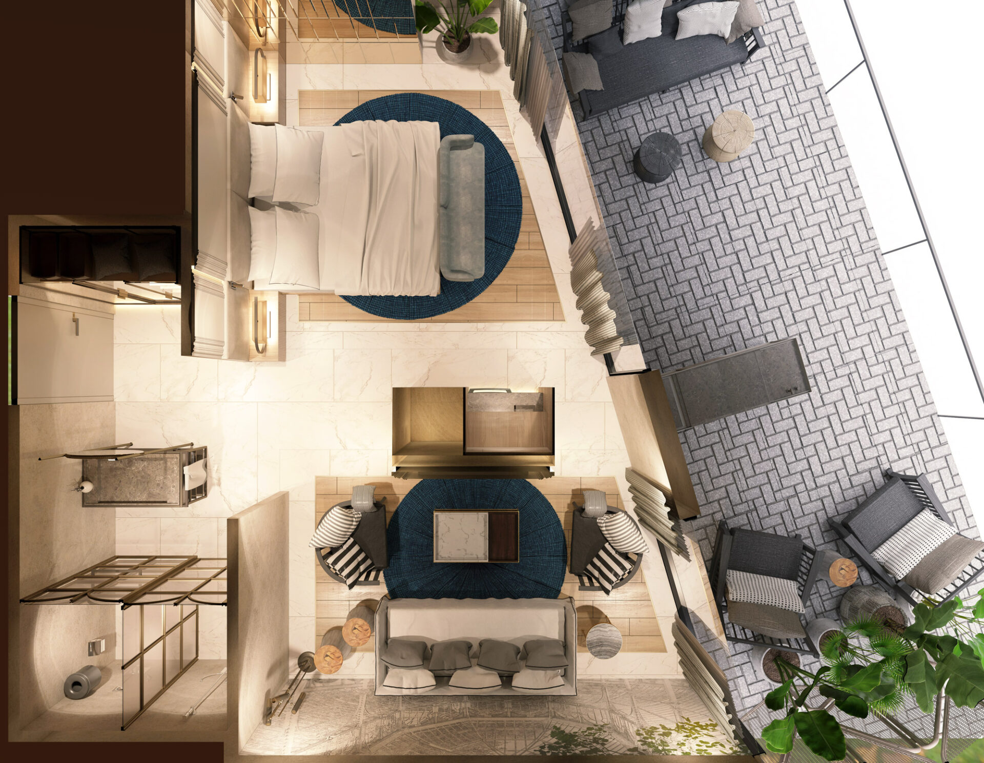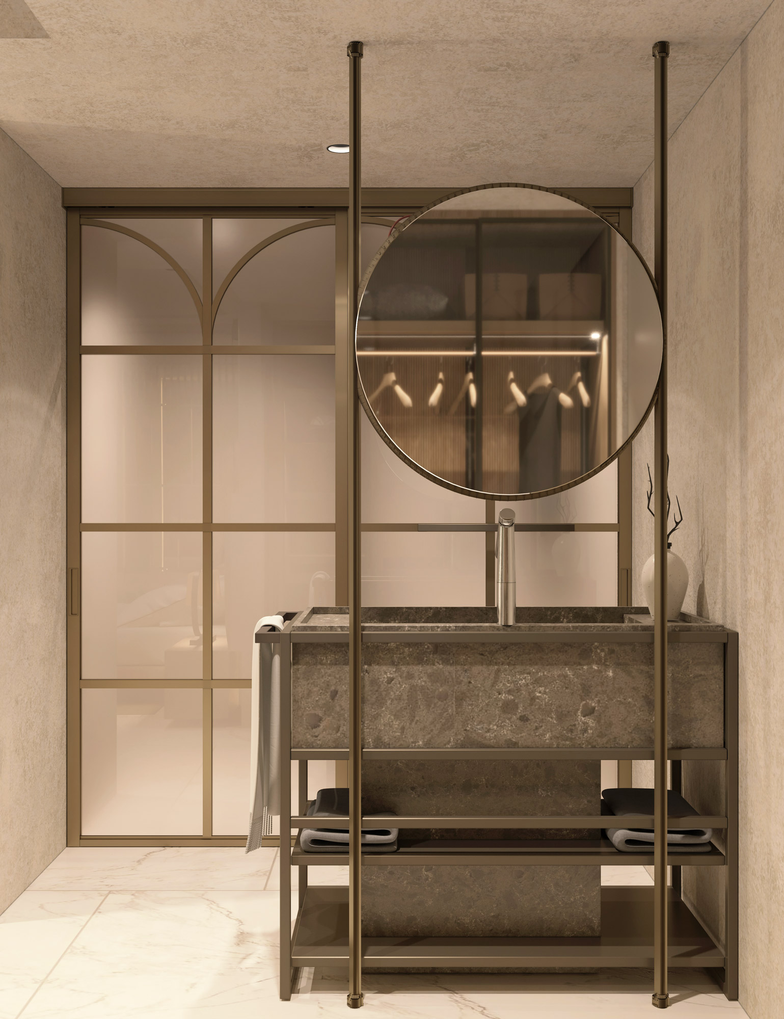 The hotel project is bringing a different perspective to city hotel concept by it’s dynamic and warm design. The floors are transforming from daily life comfort to luxurious joy as it gets to roof. The rooms are designed with the contrast of warm colors with cold material, where they also include the essentials of the entrance of the hotel and the roof, so that it’s a transition between the grandeur and a personal comfort space with practical solutions.